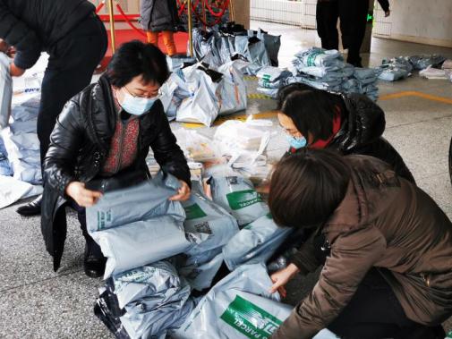 ■20日,福田区景鹏小学的老师们早早来到学校室内体育馆,在6度的气温下为学生们分装书本,并用红色塑料袋包好错峰为学生发放书籍,红塑料袋装着的书本承载着教师的爱,层层包裹的书籍传递着对孩子们的嘱托。