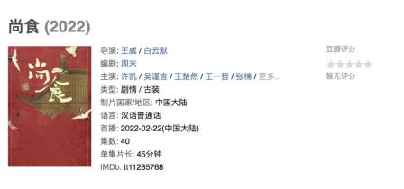 图源豆瓣电影截图《尚食》讲述了大明永乐年间,皇太孙朱瞻基(许凯 饰)遇到了尚食局女官姚子衿(吴谨言 饰)。两人互生情愫,相互扶持。朱瞻基在姚子衿的陪伴下,捍卫自己的疆土和人民,而姚子衿也在深宫中不断成长,并一路坚持对中华美食技艺的追求。