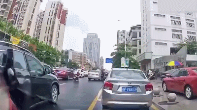随意开车门导致与后方电动自行车发生碰撞▼