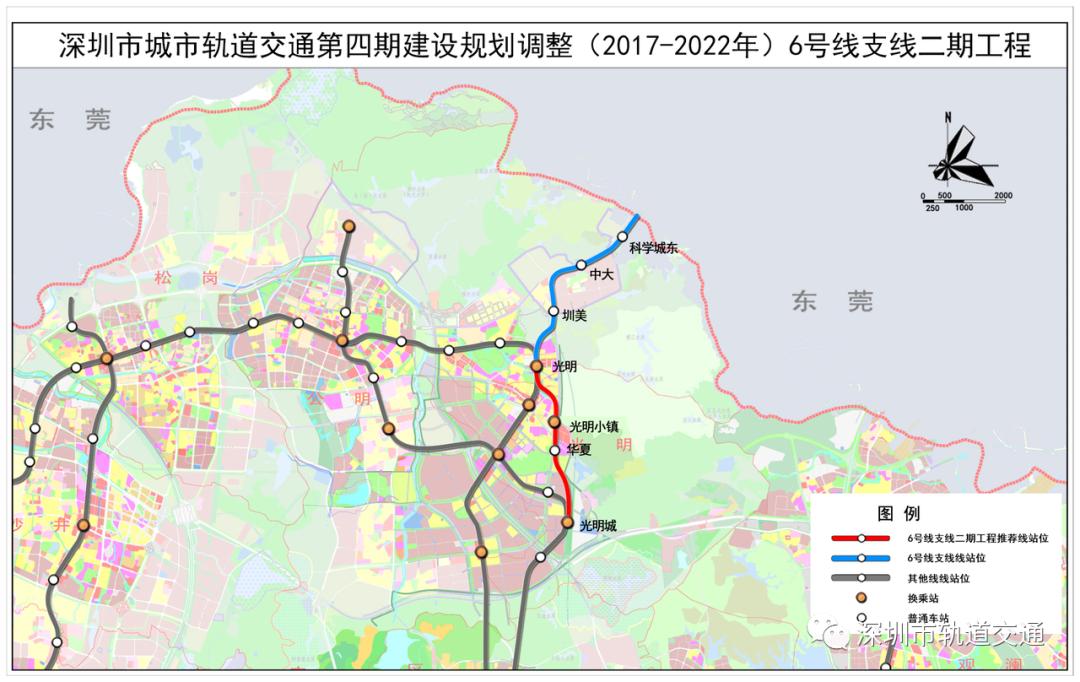 深圳地铁6号线支线起自光明区6号线光明站,止于深莞边界,全长约6.13km,共设3站4区间。