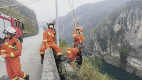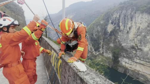 2月25日上午10点,铜仁市思南县思林乡乌江大桥附近一男子欲轻生跳崖,被困近百米高的陡峭悬崖,情况紧急,急需救援。思南县消防救援大队接到报警后,立即奔赴现场营救。