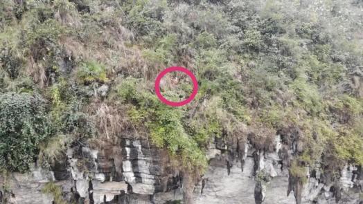 救援人员还发现,被困男子所处的崖面位置陡峭,下方就是近50米高悬崖,救援人员担心从上方一但有“风吹草动”,被困男子都有可能出现危险。