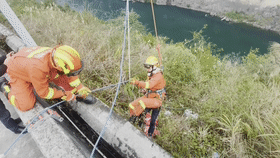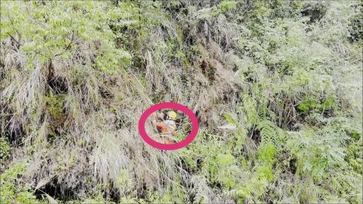 救援人员左手探路扯开荆棘,右手死死拽住该男子身上腰带,在众人合力下,经过近2个小时的紧张施救,成功将被困男子解救,并移交医务人员为其做进一步检查。