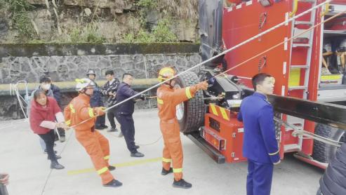 救援人员试图用喊话和手机联系的方式确定被困人员位置,无果,便立即利用无人机进行勘察。在确定其被困位置后,救援人员利用消防车吊臂作支点,携带救援装备做好安全防护后,在双绳的保护下沿主绳悬垂下降。
