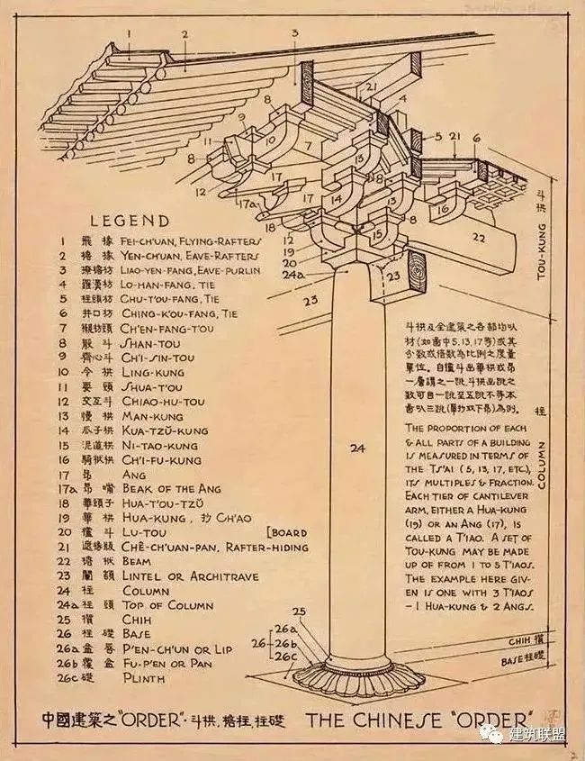 斗拱手绘图 梁思成 绘 选自《图像中国建筑史》我们所已经知道的中国建筑的主要特征