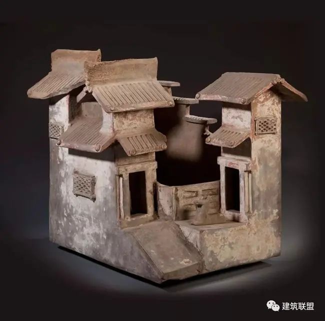 东汉陶屋 山西省大同市博物馆藏至于一所住宅、官署、宫殿或寺院,都是由若干座个别的主要建筑物,如殿堂、厅舍、楼阁等,配合上附属建筑物,如厢耳、廊庑、院门、围墙等,周绕联系,中留空地为庭院,或若干相连的庭院。