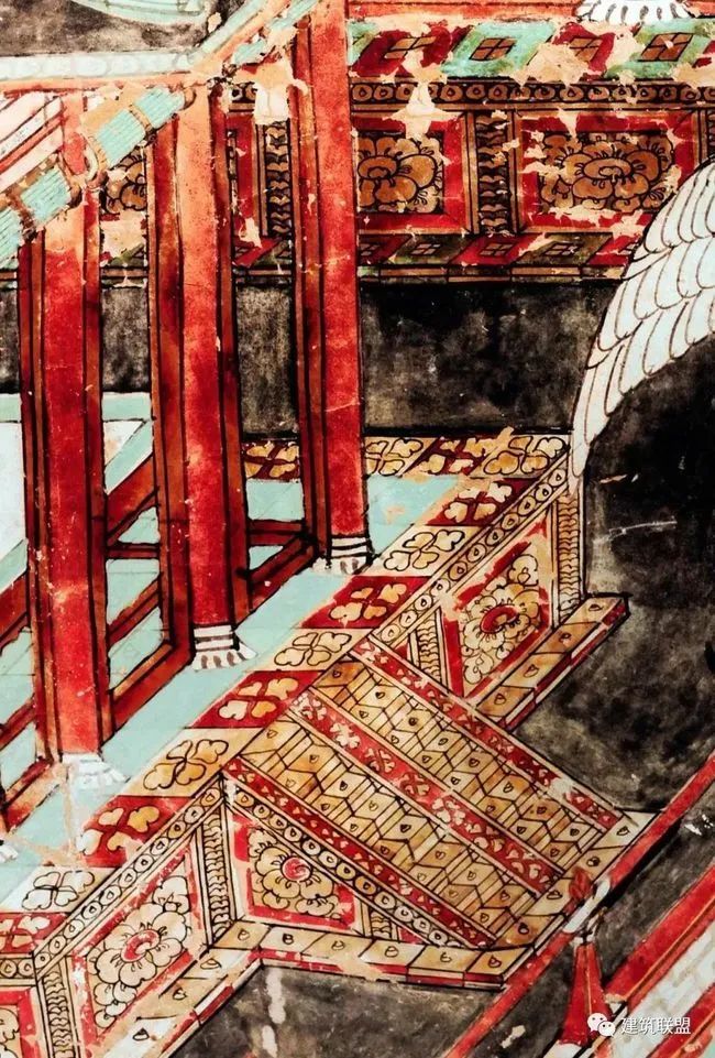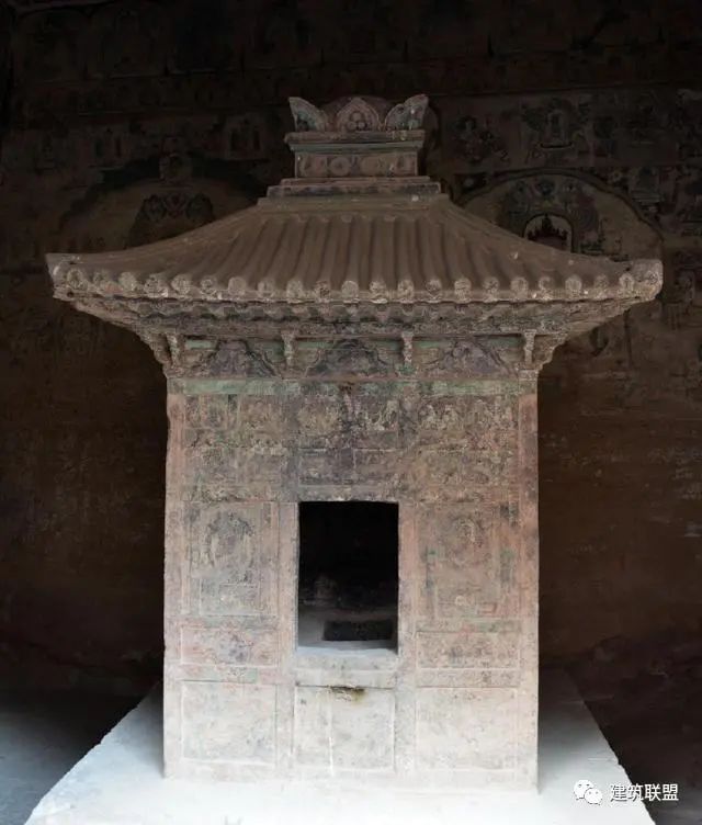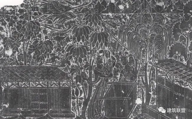 北魏宁懋墓石室上的建筑图像属于盛唐时代的一件罕贵参考资料是陕西西安慈恩寺大雁塔西面门楣石上阴刻的佛殿图。图中柱、枋、斗拱、台基、椽檐、屋瓦,以及两侧的回廊,都用极精确的线条画出。大雁塔建于唐武则天长安年间(701—704),以门楣石在工程上难以移动的位置和图中所画佛殿的样式来推测(与后代建筑和日本奈良时代的实物相比较),门楣石当是八世纪初原物。由这幅图中,我们可以得到比敦煌大多数变相图又早约二百年的比较研究资料。