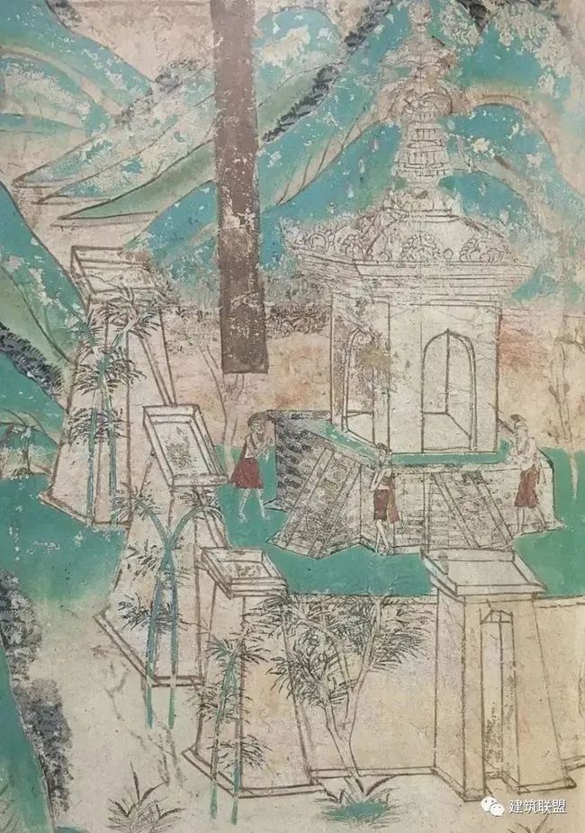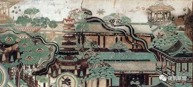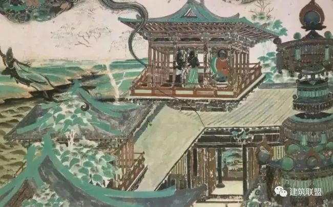 壁画中多处发现,全是木造,桥面微微拱起,两旁护以栏杆。这种桥在日本今日仍极常见。(来源:建筑联盟)