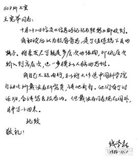 钱学森写给王宪举的信正是在钱学森先生的指导、鼓舞下,王宪举完成了这项学术-技术的创新。