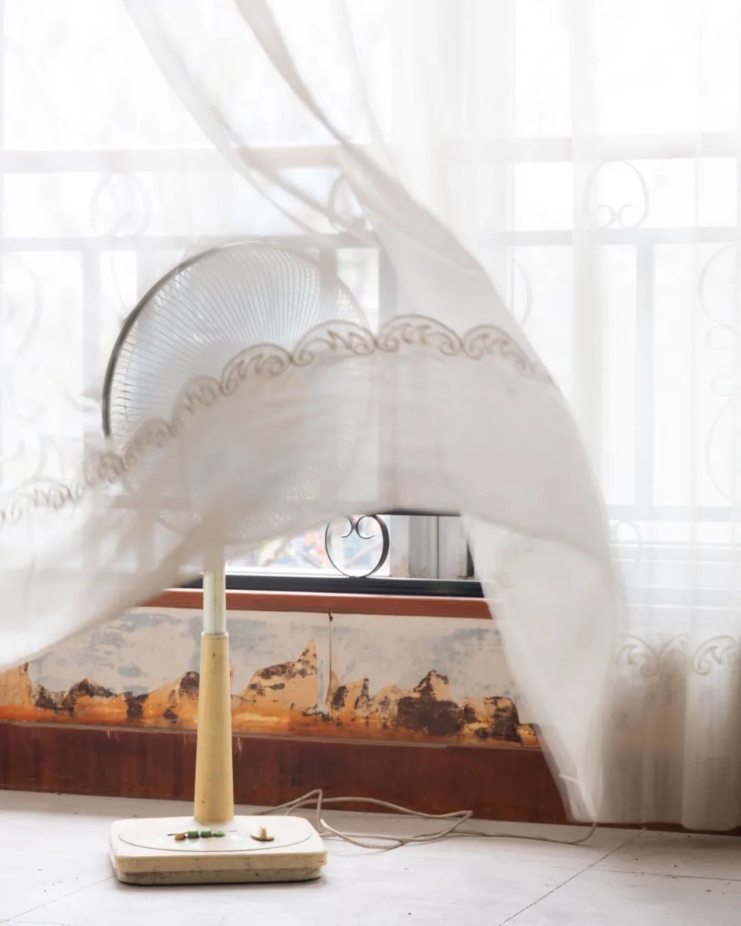 吴为5岁时与外公外婆的合影那是个很真实的影像,但窗帘飘动起来,打到了外公衣服的袖子,它又有虚幻的感受。那天下午,我觉得自己能更多地接受他们离开这件事情了。