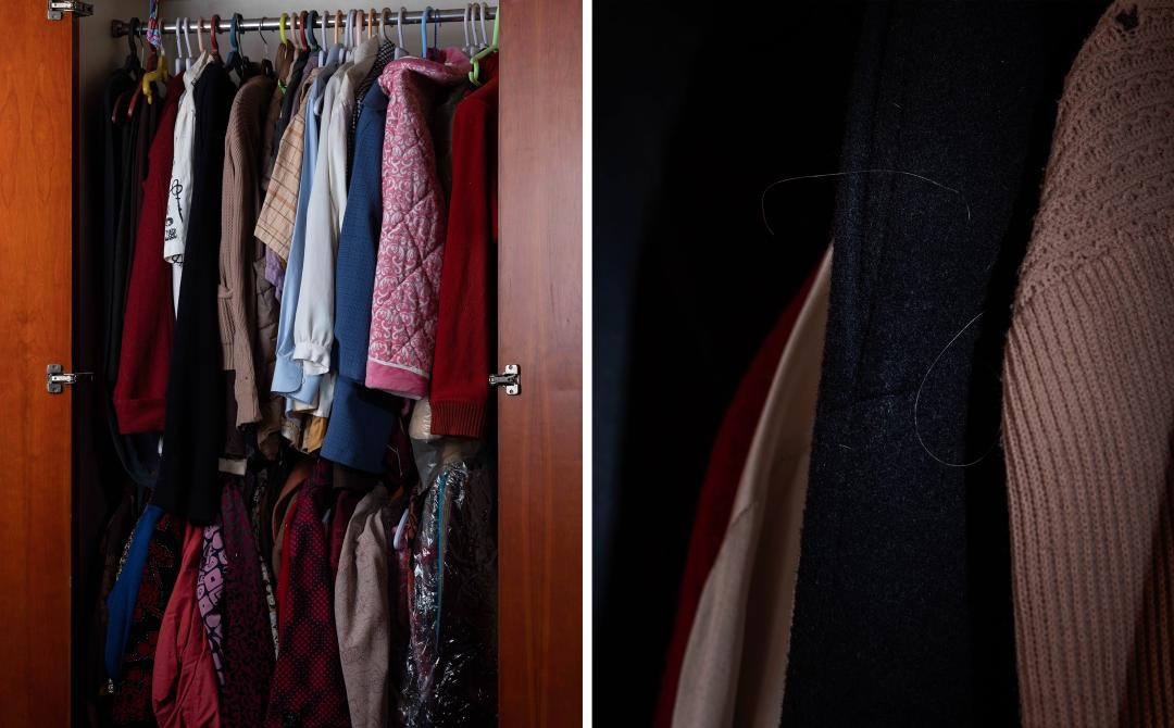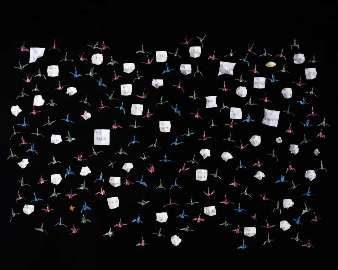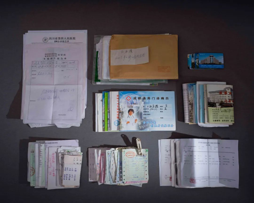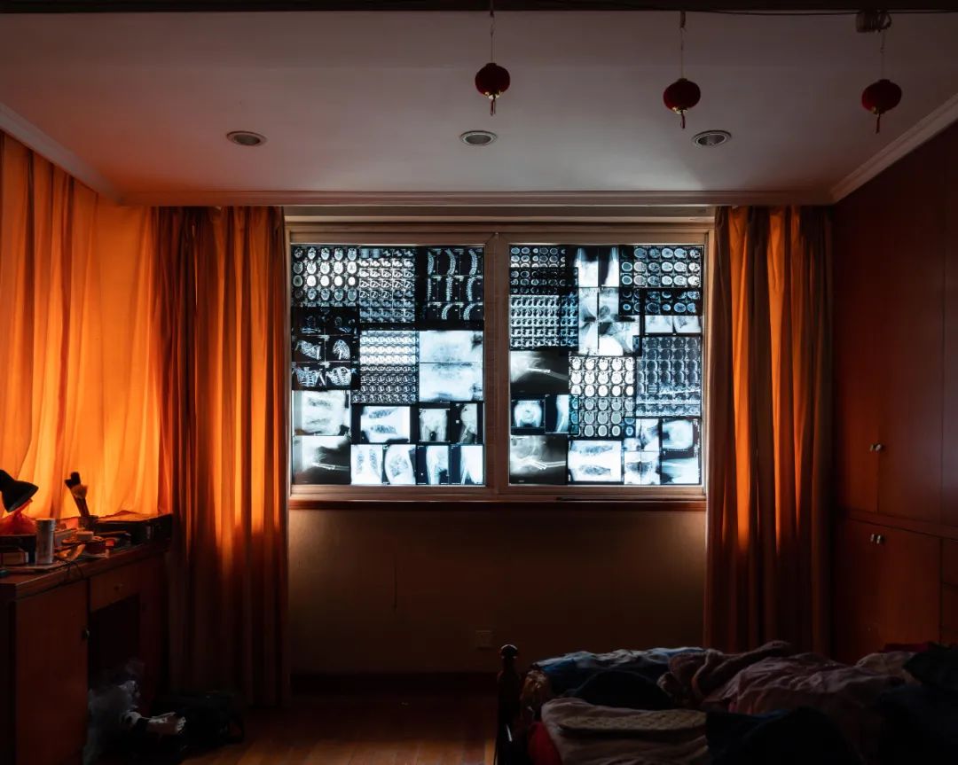 外公外婆的旧衣服,上面还有外婆的白发但是拍摄的时候,需要妈妈来帮助我,比如整理东西、置景、贴x光片、贴千纸鹤,或者我想更多地了解外婆,或者要找老家某个人的时候,我就会问她,她只好配合我,去面对这件事。