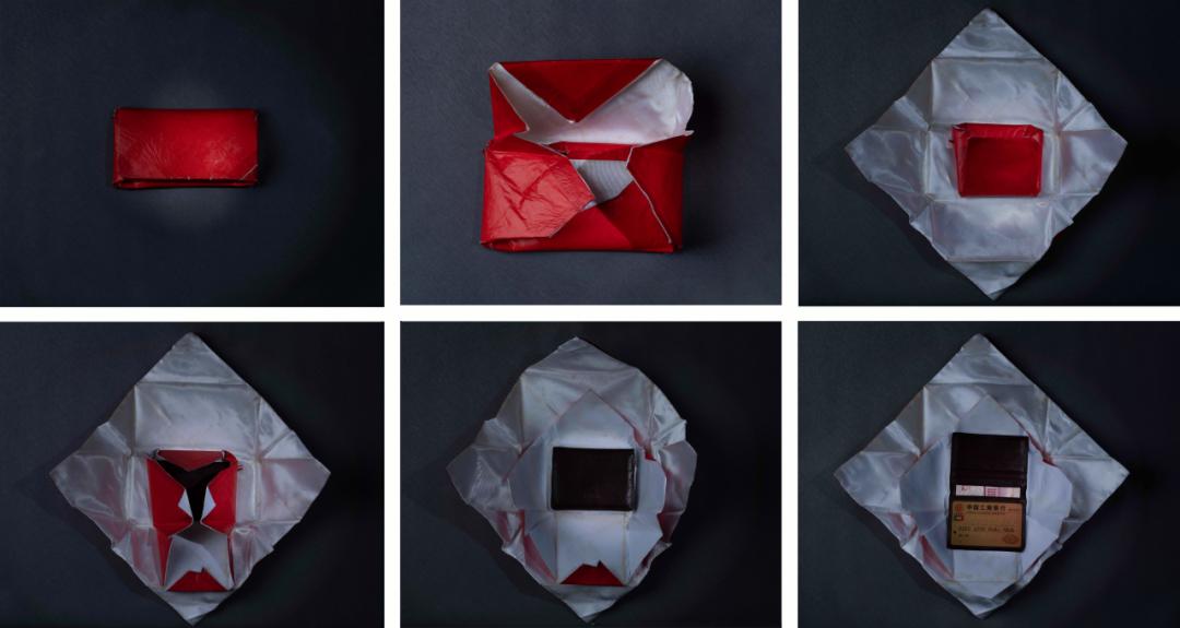 用红纸包了一层又一层的钱和卡