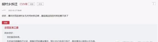 网友咨询:你好,请问示范区胡村乡孔村何时拆迁啊,据说周边的的村拆的差不多了