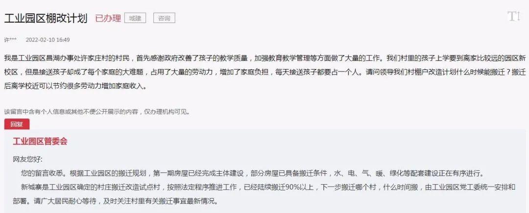 网友咨询:我是工业园区昌湖办事处许家庄村的村民,首先感谢政府改善了孩子的教学质量,加强教育教学管理等方面做了大量的工作。我们村里的孩子上学要到离家比较远的园区新校区,但是接送孩子却成了每个家庭的大难题,占用了大量的劳动力,增加了家庭负担,每天接送孩子都要占一个人。请问领导我们村棚户改造计划什么时候能搬迁?搬迁后离学校近可以节约很多劳动力增加家庭收入。