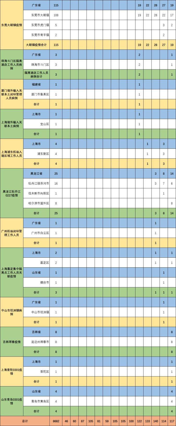 18-东莞大朗镇疫情:于2月25日首次报告病例,昨日新增19例,累计115例,波及1省1市。