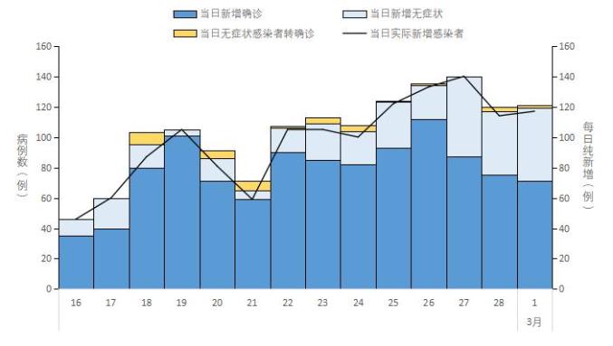 昨日新增1例,也为入境人员集中隔离点工作人员,系2月27日本市报告的一例本土无症状感染者的密切接触者,即被隔离管控。需评估闭环管理情况及疫情外溢的可能性,根据评估情况,及时实施风险排查与管控措施。加强隔离场所感染控制和个人防护。尽快开展病毒基因测序比对,调查疫情来源及感染者感染原因,采取针对性防范措施