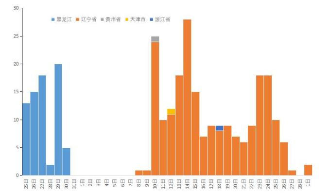 1-牡丹江-葫芦岛关联疫情:于1月25日首次报告病例,昨日新增2例,累计284例,波及5省8市。