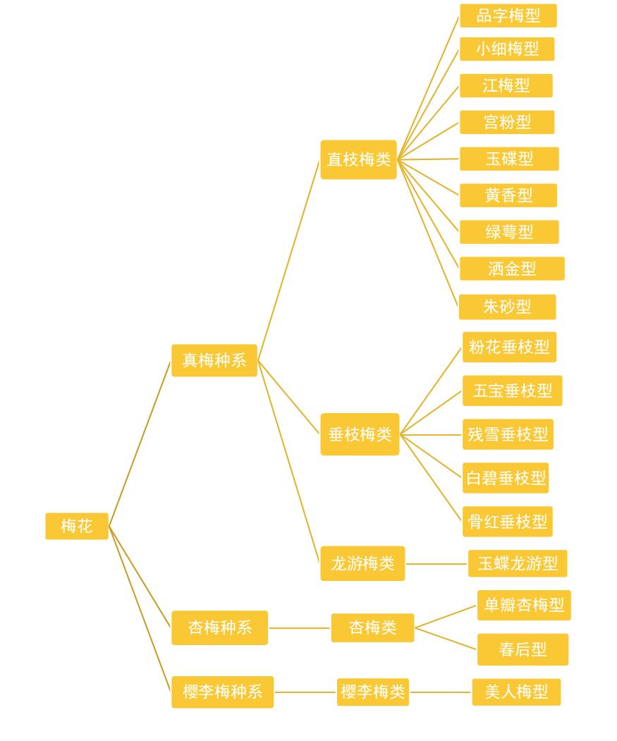 本世纪40年代,我国学者着手对梅品种进行了系统的调查与整理。经过57年分类系统的不断完善,1999年,陈俊愉院士将“二元”分类的基本原理与具体实际合理地相结合,提出了中国梅花种系(种型、系统)、类、型分类检索表(1999),归纳为3系、5类、18型。