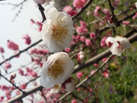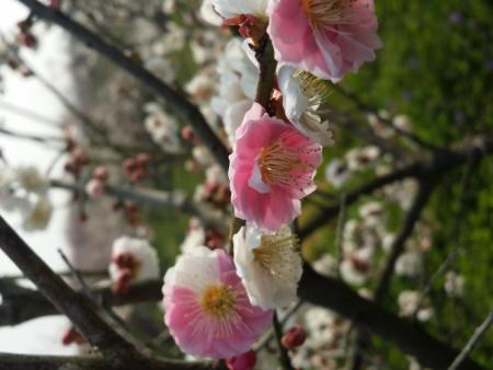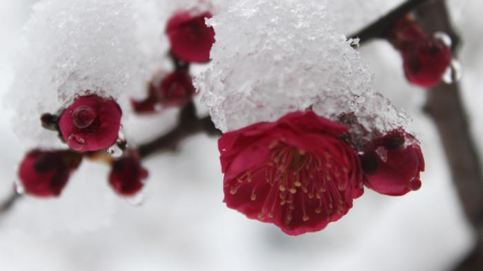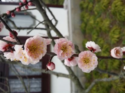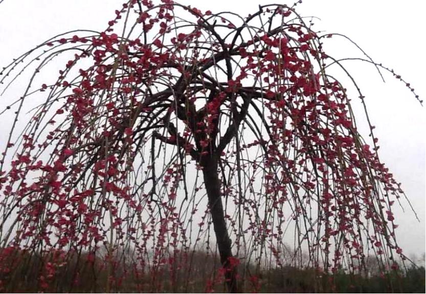 垂枝品种群:故名思意就是枝条下垂,花期2月下旬到3月下旬。重瓣、单瓣都有;花瓣5-26不等;花色白色,粉色到深红色;单瓣的有单粉垂枝,柳川垂枝、残雪垂枝等,重瓣的有绯丝垂枝、见惊梅垂枝。No.3