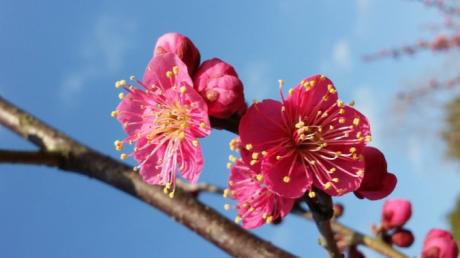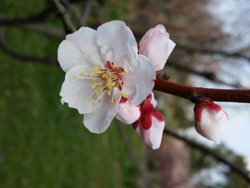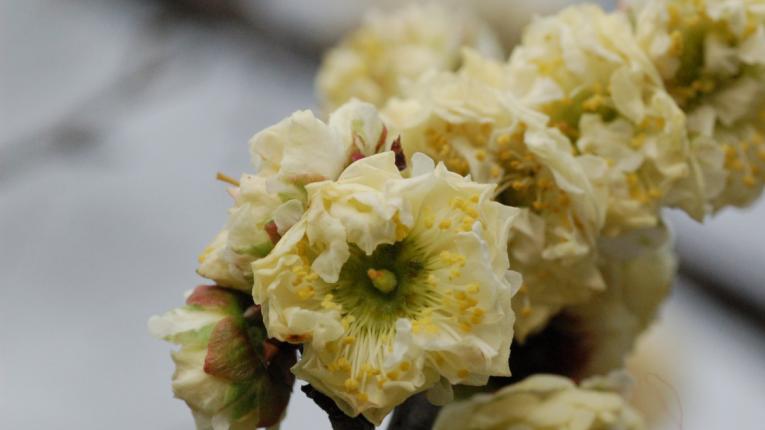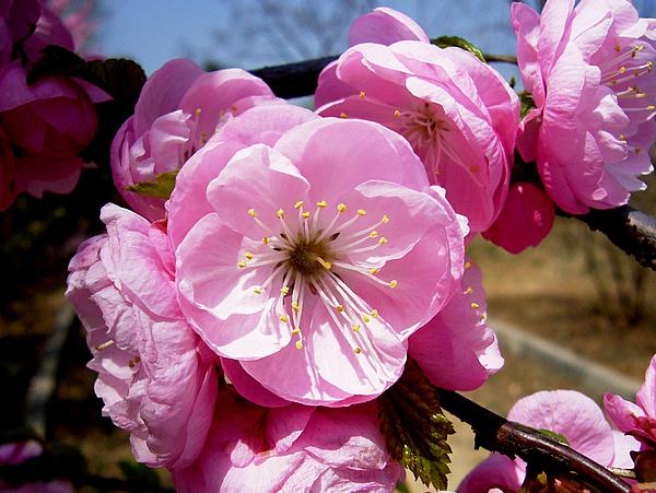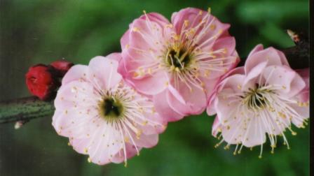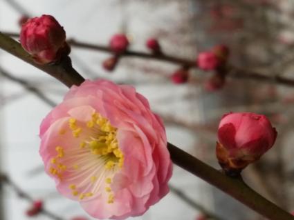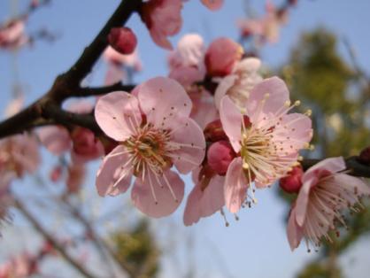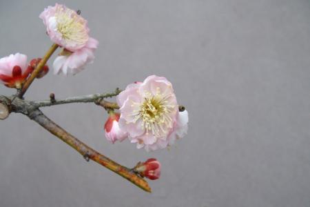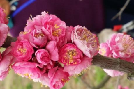扣瓣大红宫粉品种群:花期2月中旬到3月中旬。都为重瓣,花瓣13-45不等,花色淡粉色到玫瑰红;清香;萼片绛紫色。如淡粉、江南宫粉、重瓣大红、人面桃花、密丛晚粉。