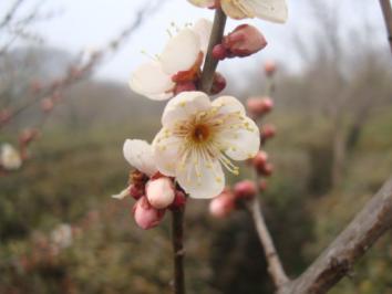 长丝单粉单瓣(江梅)品种群:江梅品种群梅花为最古老的花梅品种,花期2月上旬到3月上旬,开花相对较早。一般为单瓣,花瓣5-7,多5。花色白色较多,部分粉色到淡紫红色;清香;萼片绛紫色。白色的如大花江梅、密花江梅、七星梅等;粉色的如早单粉,长丝单粉;淡紫红色的如寒红、烈公梅、红雀等。
