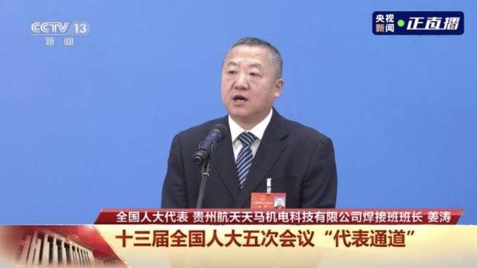 新华每日电讯记者提问:我有问题问姜涛代表。姜涛代表您好,我们知道您参与焊接的产品遍布航空航天各领域,您在工作中怎样将“工匠精神”转化为创新成果?我的第二个问题是关于“工匠精神”的传承,我们中国有句老话“教会徒弟就饿死师傅”,您作为“大国工匠”是如何看待对下一代工匠的培养?谢谢。姜涛代表精彩回答:大家好!我是姜涛,来自革命圣地遵义,是贵州航天天马机电科技有限公司的一名电焊工,同时也是国家级“技能大师工作室”和“劳模创新工作室”带头人。