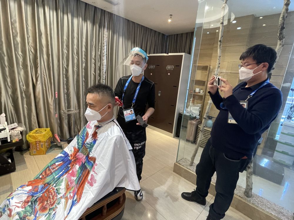 2021年12月11日,在张家口云顶大酒店的五楼,理发店正式开业,专门服务闭环内的志愿者、媒体记者、涉奥保障人员等。