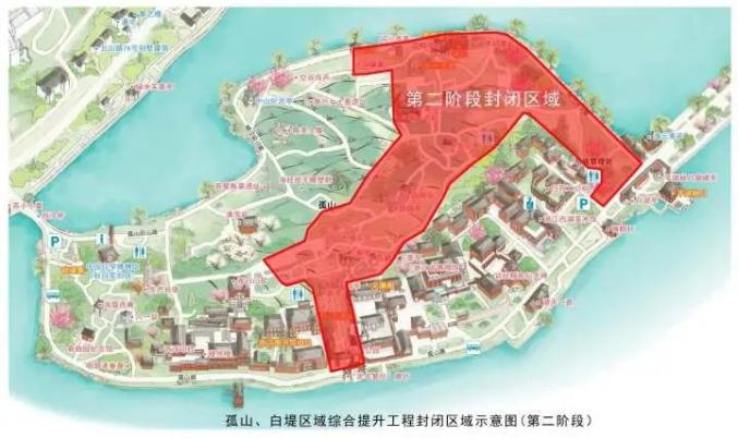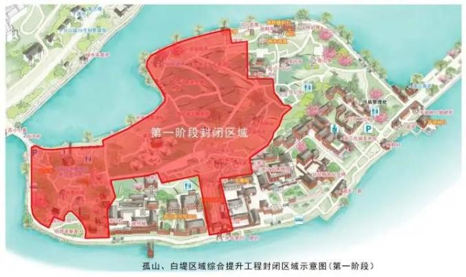 为进一步优化游览环境,迎接杭州2022年第19届亚运会,杭州西湖风景名胜区岳庙管理处将对孤山、白堤区域实施综合提升。为保障市民游客的安全及游览体验,同时确保工程顺利实施,将对孤山公园分阶段、分区域实施封闭。