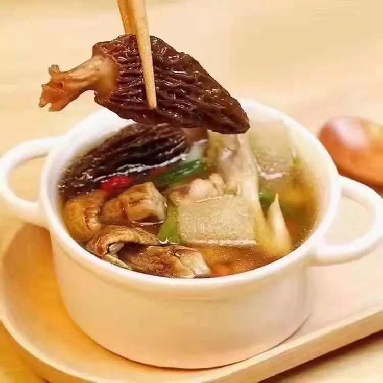 平时嫌菇类气味难闻的朋友,也完全不用担心,羊肚菌烧熟后,完全没有菌菇的土腥气,只剩下Q弹鲜香,推荐没吃过的朋友可以试试。