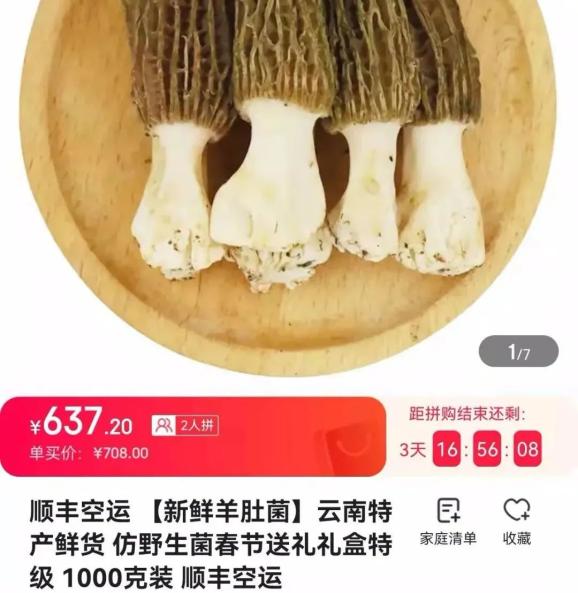 1000g规格的鲜羊肚菌市场售价在389-638元