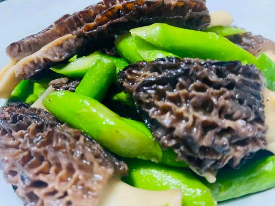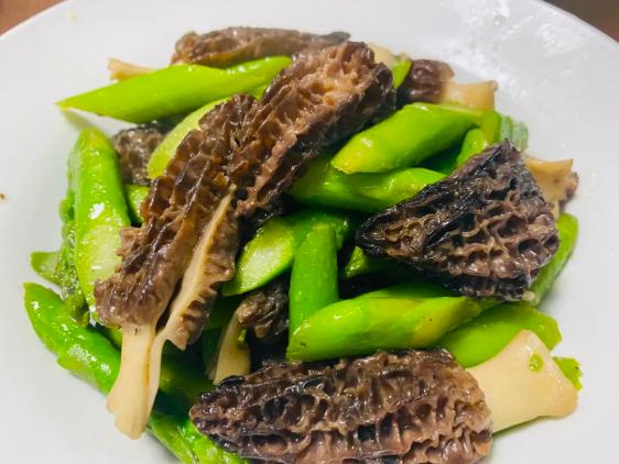 ▲实拍羊肚菌炒芦笋