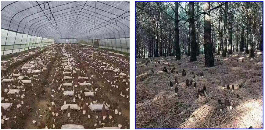 ▲棚内(左) VS 仿野生林(右)比平原的棚内羊肚菌