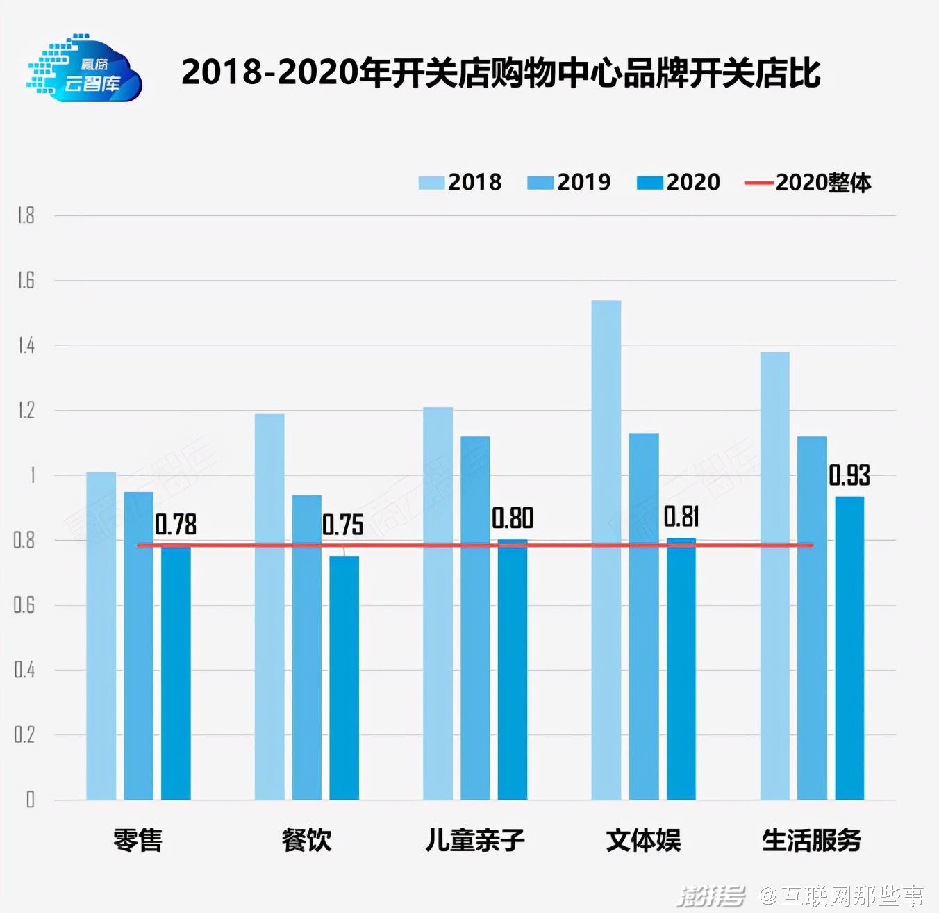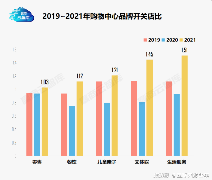 还是“赢商云智库”的数据,对比2020年的“惨不忍睹”,2021年全国24城1011家商场的开关店比出现反弹,从2020年的0.78上升到2021年的1.14。