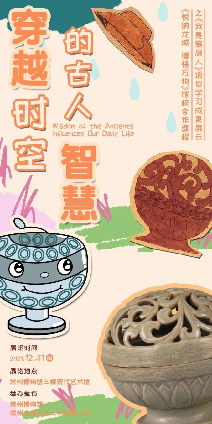 本次展览由常州博物馆与常州市新北区三井实验小学共同举办,馆校双方从多角度赏鉴常州博物馆藏15件文物,共同绘制文物卡通形象、撰写文物故事,并搜集古为今用的实物、制作文创产品100余件,以童趣的视角和语言讲述穿越古今的饮食、梳妆、雅趣生活,探寻古人的聪明才智投射到当今生活中的运用与启迪。