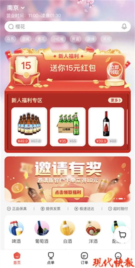 今年3月,蒋女士给宝宝办了一个百天宴席,因为觉得酒店的酒水有些贵,一家人便决定自己带。" 我们一共摆了10桌,每桌都要准备红酒、白酒,自己带也太重了,搬来搬去很烦。"蒋女士告诉现代快报记者," 后来有朋友告诉我,可以点酒水外卖,现在专门的平台还有优惠券可以领。"