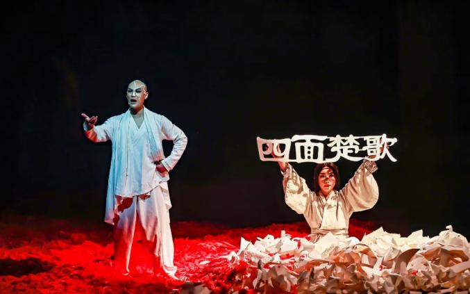 杨丽萍舞蹈剧场《十面埋伏》剧照4月1日-2日杨丽萍舞蹈剧场《十面埋伏》是著名舞蹈艺术家杨丽萍于2015年创作的全新概念舞台作品。国际著名视觉艺术家、奥斯卡金像奖得主叶锦添担任美术和服装设计。该剧讲述的是中国古代经典的历史故事——项羽和刘邦“楚汉相争”,融合了戏剧、民乐、剪纸等多种艺术元素,场面宏大,效果震撼。