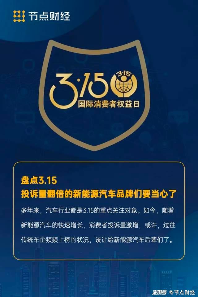 其实,除了特斯拉和“蔚小理”外,比亚迪、吉利、哪吒、威马等新能源汽车品牌的投诉量也都快速增加。不难推测,随着新能源汽车的快速发展,消费者的的投诉也会越来越多,而3.15作为消费者权益的重头戏,必然会将这一板块纳入监督范围。所以,新能源汽车品牌或许要多加小心。