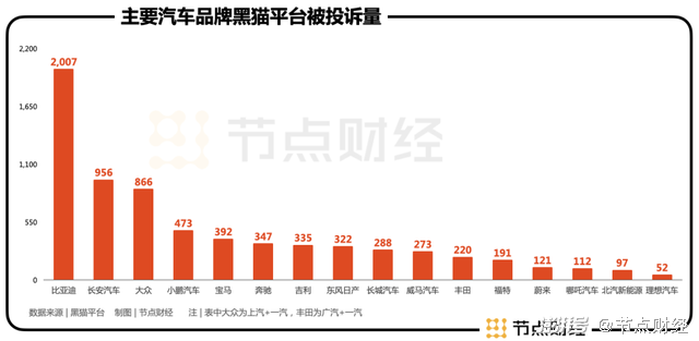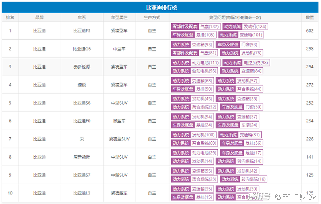 从上面的排行榜可以发现,比亚迪的这款车投诉量达到352条,比后面六款车的总和还要。其实,在其他平台,比亚迪的被投诉量也位居前列。