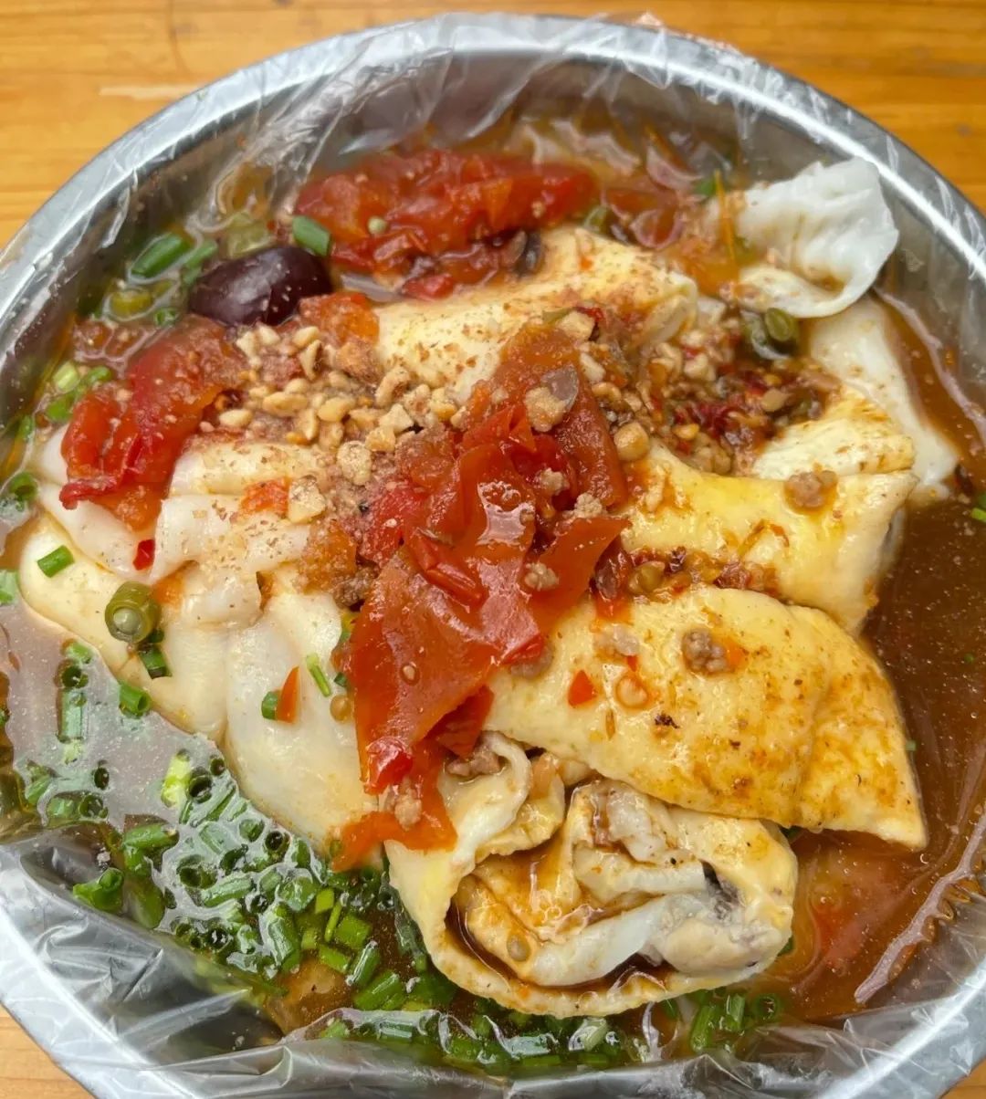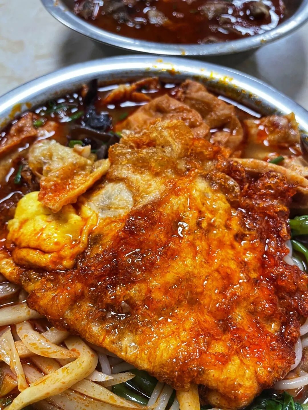 柳州的卷粉薄薄的粉皮里面包裹着鸡蛋和香肠,再配着辣辣的红汤一起吃,绝了。