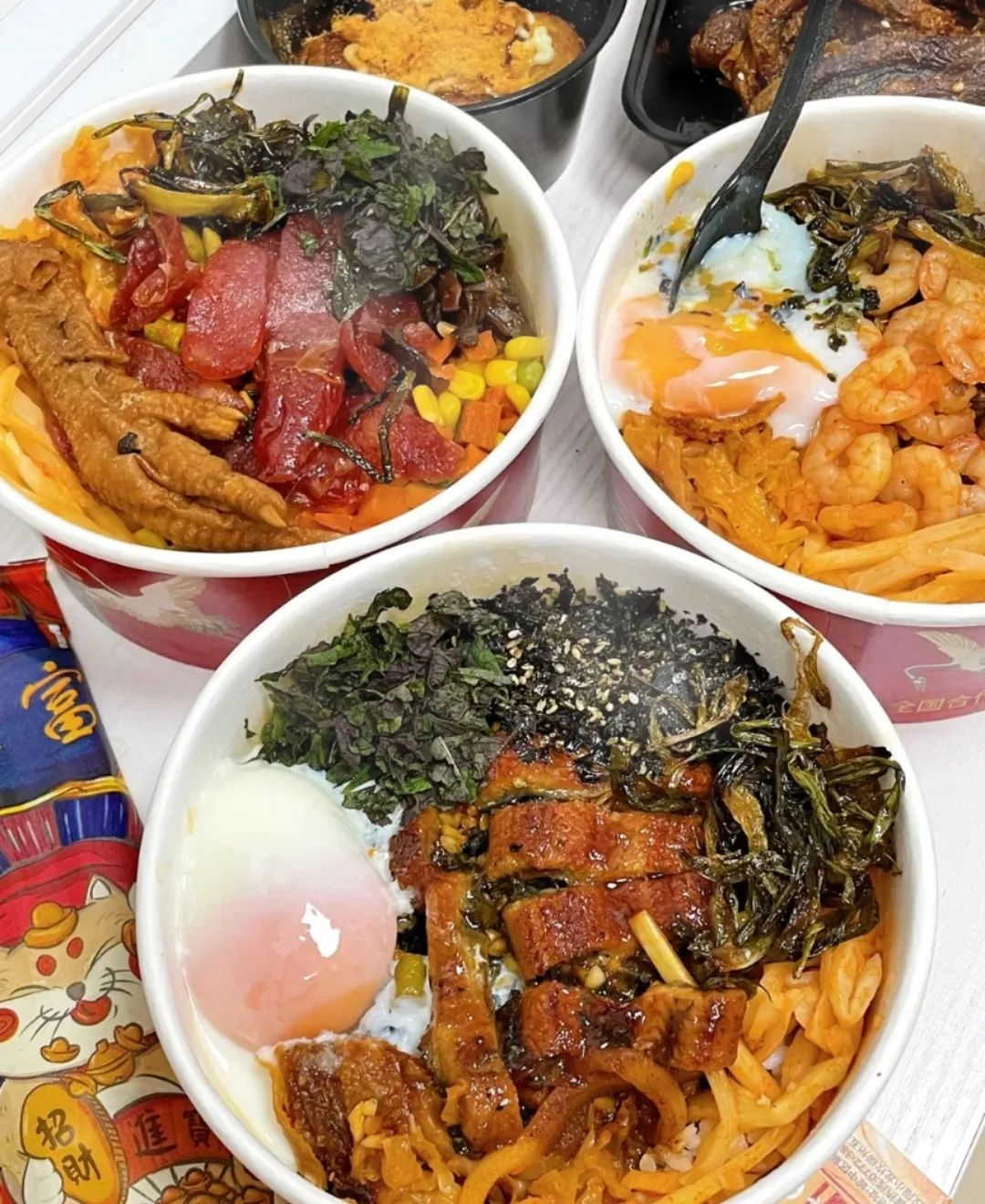 另外,鳗鱼螺蛳拌饭和香肠螺蛳拌饭也很好吃~老板送的海苔碎、紫苏、油葱和温泉蛋,建议全都加,尤其是温泉蛋,不加真的没有灵魂。