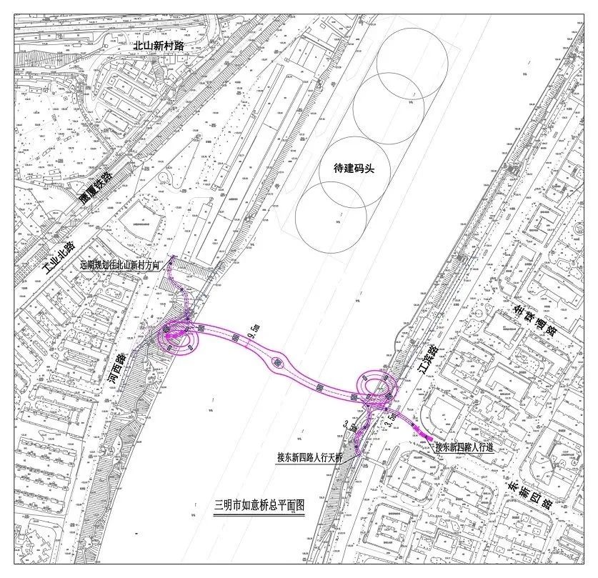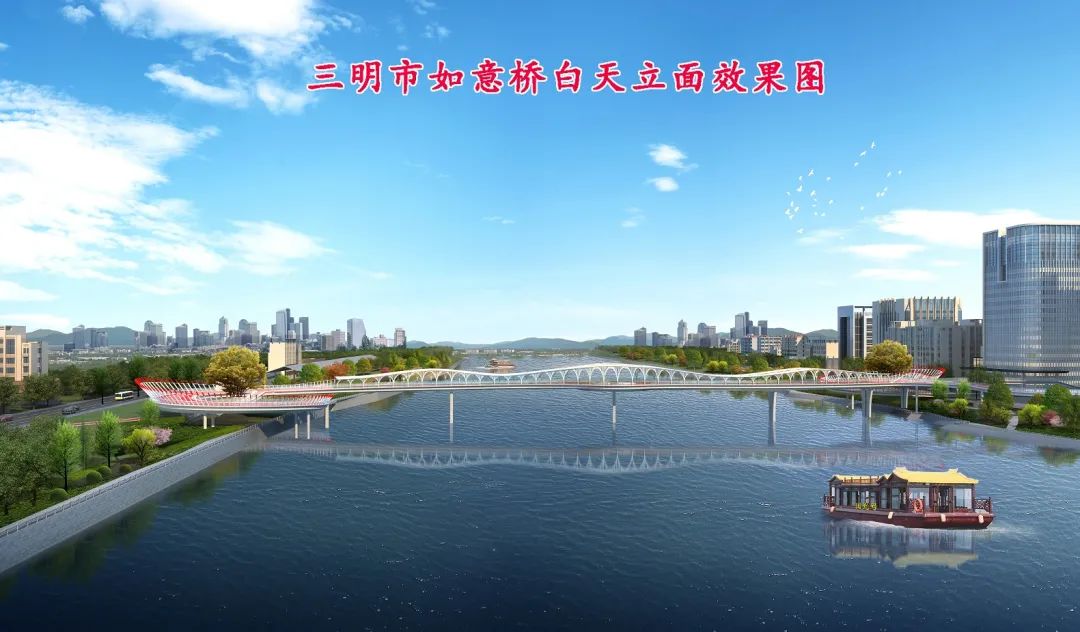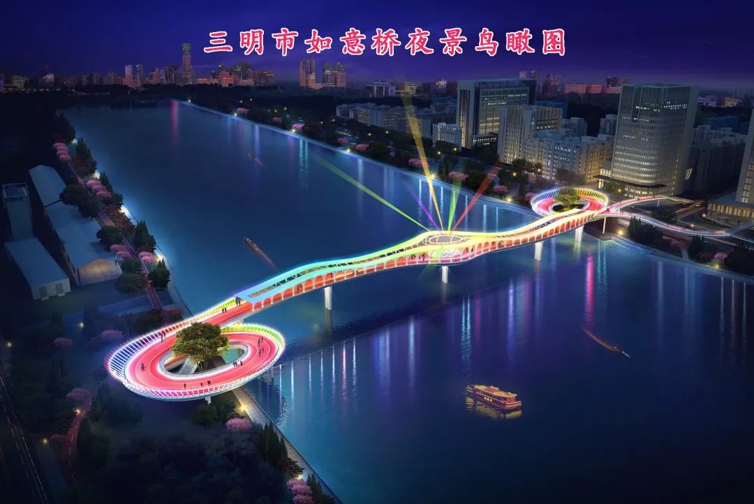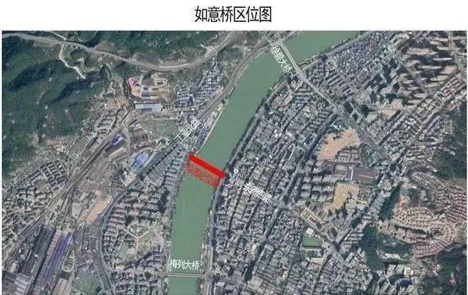 △鸟瞰图如意桥位于徐碧大桥与梅列大桥之间,东新四路江滨路交叉口附近,东侧与江滨路及东新四路交叉口连接,西侧与河西路步道连接。