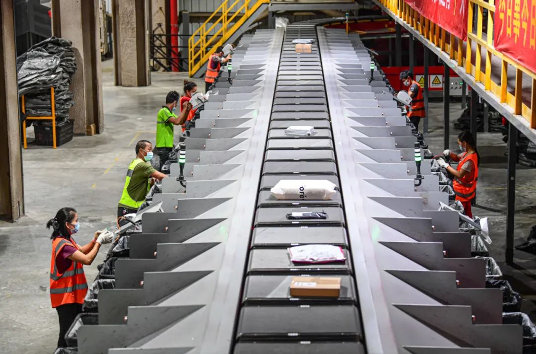 顺丰速运海口美兰中转场拍摄的快递分拣、打包现场。资料图