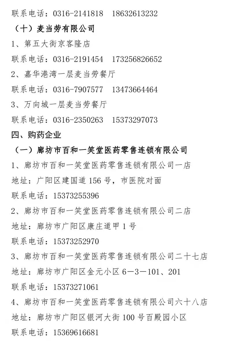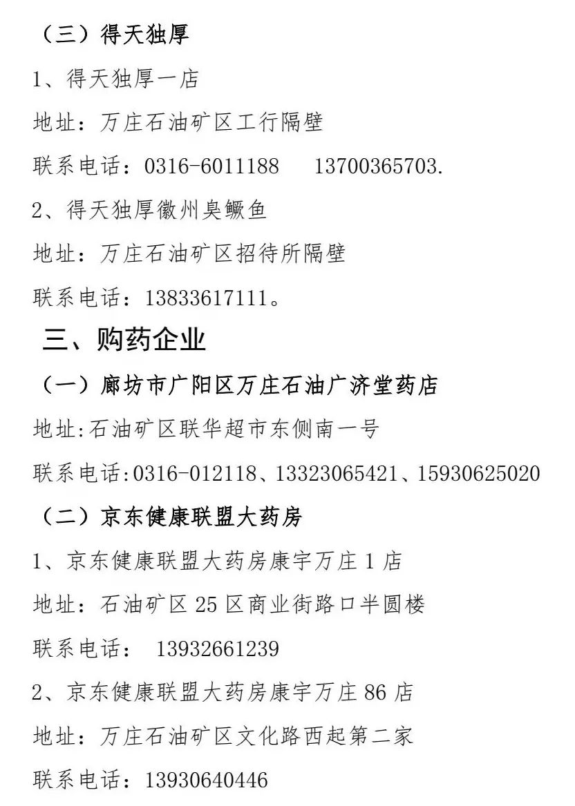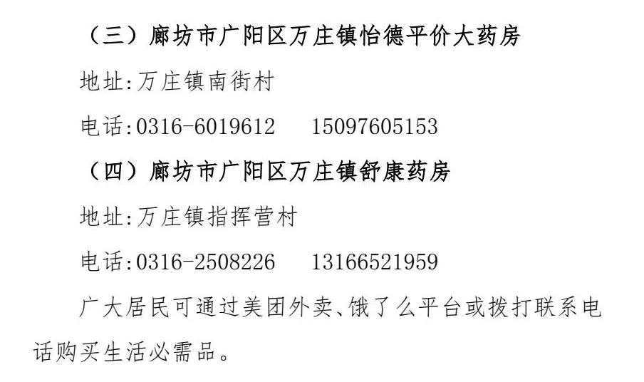 廊坊市广阳区市场监督管理局发布提示,按照区委、区政府疫情防控工作要求,为保障全区居民居家期间生活需求,避免人员聚集,现将广阳区便民线上购买生活必需品、订餐、购药企业名单公告如下: