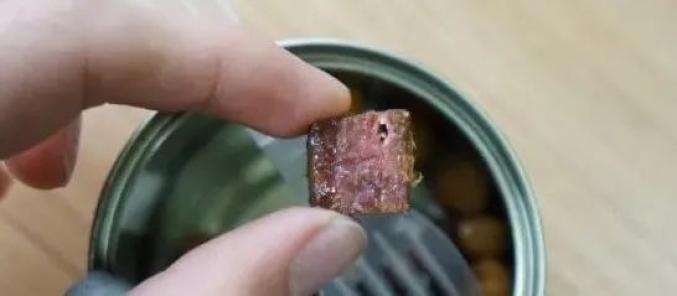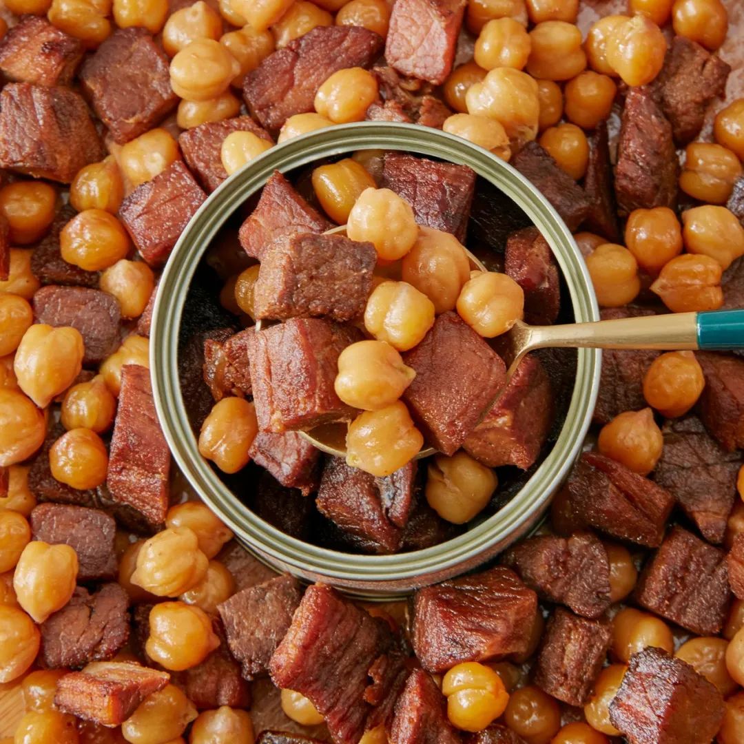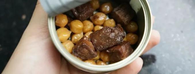 ▲实拍打开罐子,全是牛肉和鹰嘴豆,没有卤汁来充克数,实在。