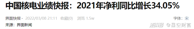 而反观国内,最近也到了各大上市公司“秀肌肉”的时候了。中国核电(601985)就披露去年营收和净利同比增长了19.3%和34.05%。