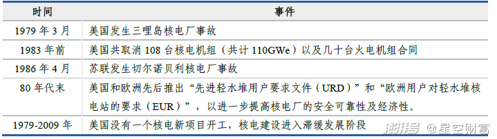 核电技术发展情况(中广核招股说明书)天有不测风云,人有祸福旦夕。80年代起美国和苏联接二连三地发生核电站安全事故,就包括我们开篇说到的切尔诺贝利核电站。为了全人类的幸福生活,各国都在加强核电项目的审核。我国的核电就是在那时,伴随着改革开放的号角,开始逐步发展。
