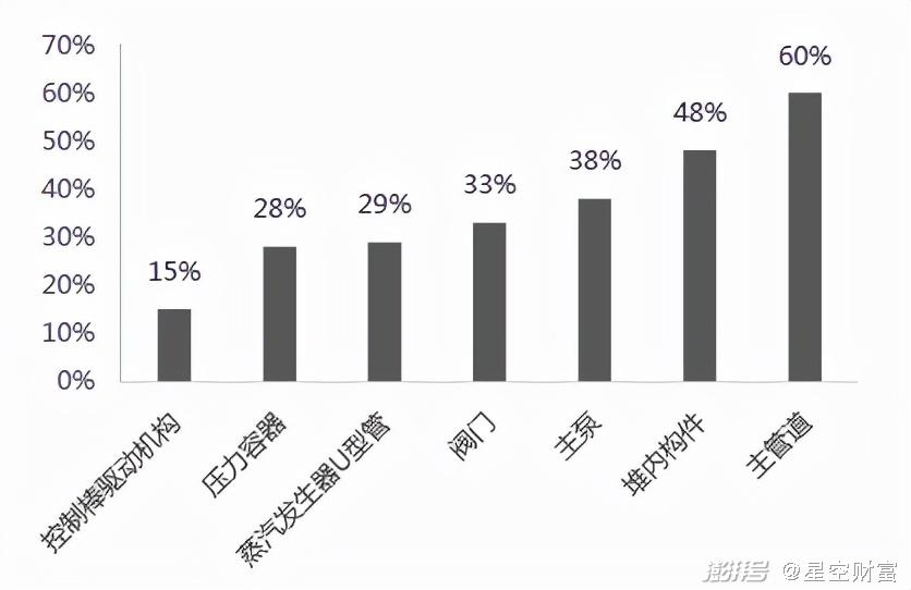 而核电设备中,一般包括了核岛、常规岛和核电辅助系统(BOP)三个部分,核岛是核心。核岛设备又可以继续细分成阀门、主管道等等。有一个突出的特点就是:技术壁垒越高的零部件,毛利率也就越高(你玩得了,别人玩不了,你自然就安全些)。比如主管道就接近60%,民营和国企纷纷入局,玩家主要有中国一重(601106)、东方电气(600875)、台海核电(002366)等等。
