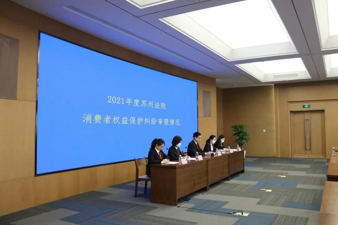 消保委是消费者权益保护的“前沿阵地”,在保护消费者权益、规范经营者诚信经营的过程中起到了重要作用,而人民法院则是守好消费者权益保护的“最后一道防线”,肩负着以法明理、定纷止争的责任。在2022年“3·15”国际消费者权益日来临之际,苏州中院及苏州市消保委联合召开新闻发布会,旨在建立起消费者权益保护“前沿阵地”和“最后一道防线”之间的桥梁纽带,加强消费者权益的保护力度,助力苏州市消费结构提档升级。发布会上,苏州中院通报了2021年度苏州法院消费者权益保护纠纷审理的基本情况并发布了六个典型案例,市消保委通报了2021年度消费者权益保护投诉分析报告、2022年3·15系列活动并发布了六个消费维权警示案例。