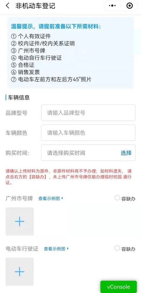 1. 五山校区2021年10月31日前和大学城校区2021年11月14日前已登记报备的电动自行车,可由申办人员直接通过小程序登记车辆(原登记车辆已更换的,可直接登记更换车辆信息);