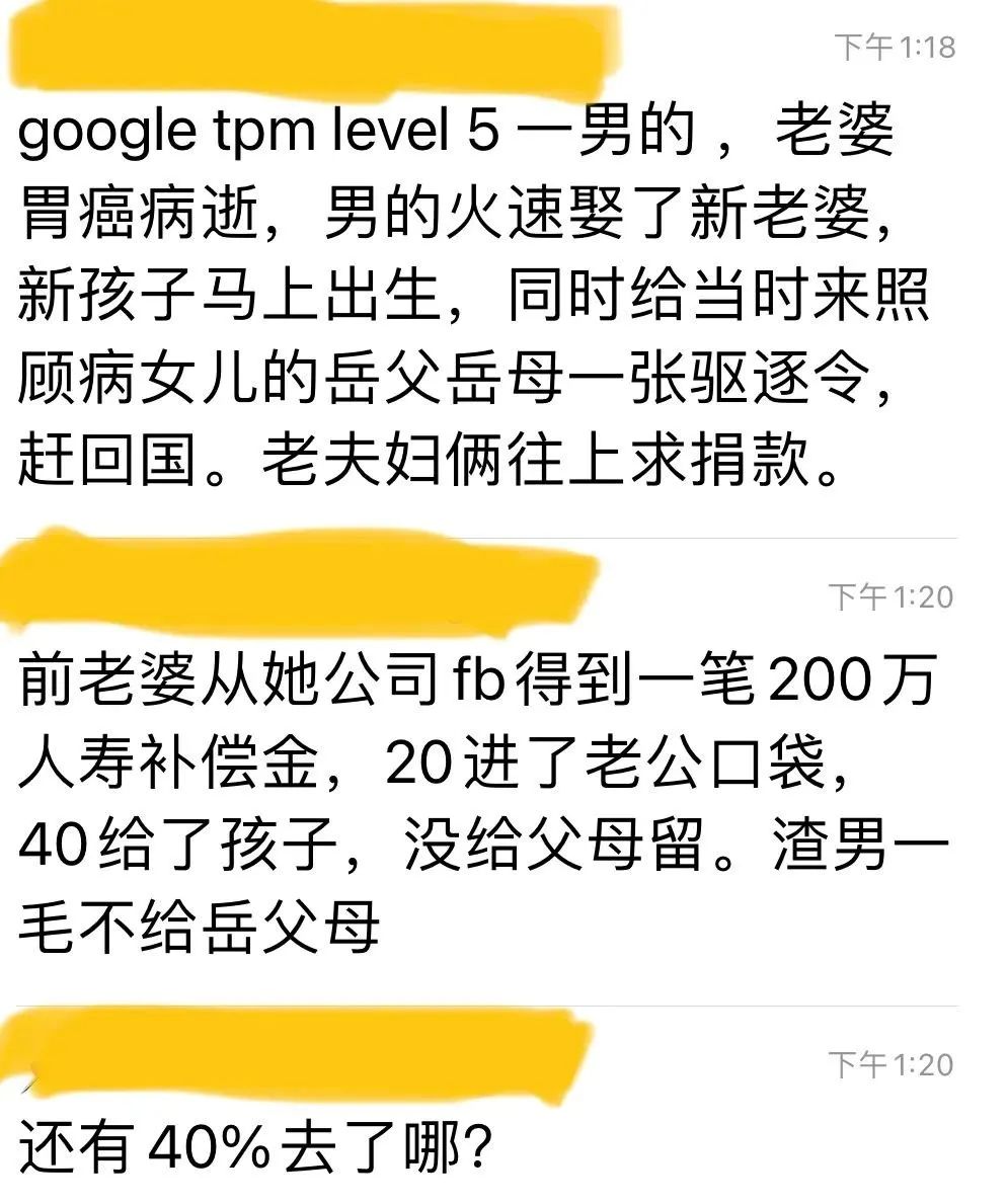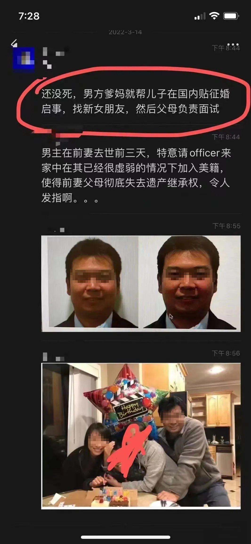 渣男本人。2020年女人不幸罹患胃癌,2021年春天病情恶化后才告知了国内的父母,3月父母飞来美国送女儿最后一程。